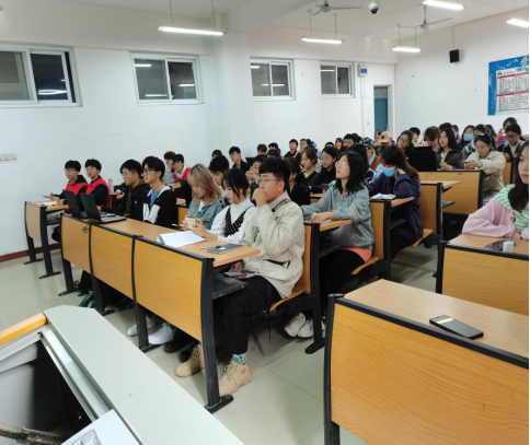 图为青年志愿者负责人为各班讲述如何注册志愿