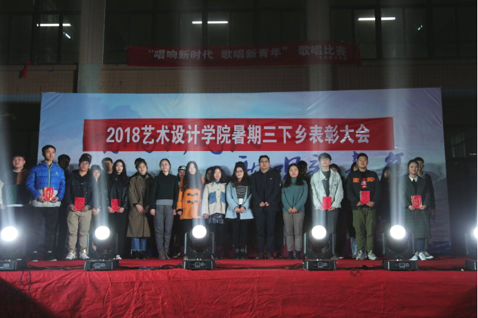 主持人慷慨激昂的开场词过后,本次大会正式开始。各位领导老师依次上台,为在本次下乡活动中表现优异的先进团队及个人颁发证书及奖品并合影留念,整场大会进行的有序不乱,现场气氛庄重而温馨。