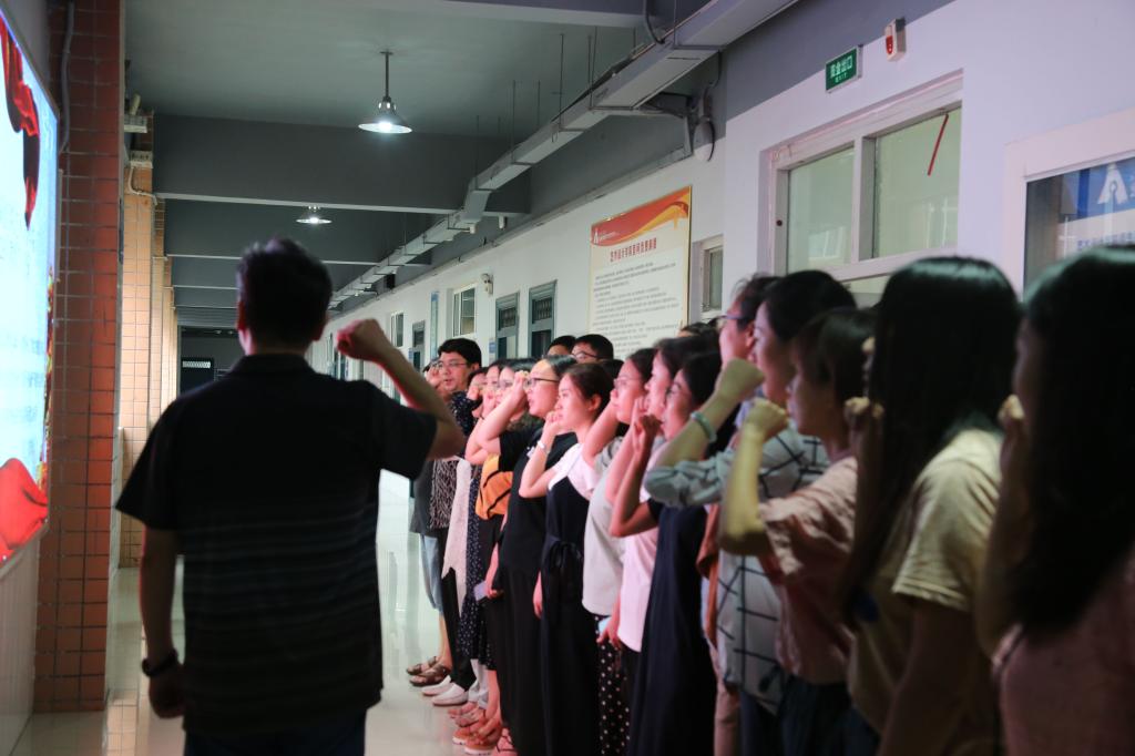 9月10日下午,为进一步营造“弘扬高尚师德、潜心立德树人”的浓厚氛围,激发教师职业荣誉感和社会责任感,bevictor伟德官网开展重温“河南教师誓词”活动,党总支书记马步伟、经理陈玉兴及全体教职工参加本次活动。