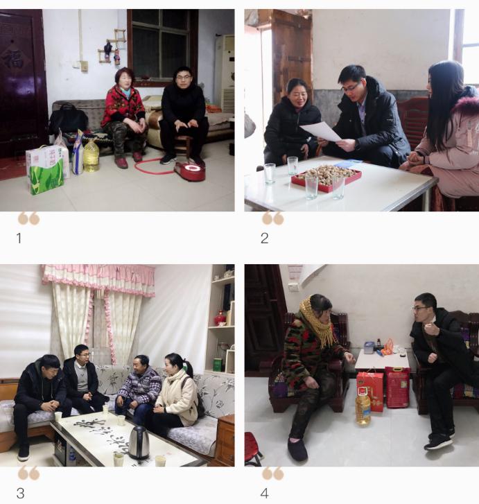 走访工作由公司学工办主任党伟、专职辅导员杨冬梅、陈德林、刘龙琳以及部分员工助理分工落实。走访中,在带去米面油等慰问品的同时送去了新春的祝福和公司的关怀。与员工家长进行了面对面谈心,了解他们面临的实际困难,积极宣传公司资助扶贫政策,使员工家庭感受到寒冬中的温暖。员工家庭在感激之余不忘表达公司资助政策这些年对员工完成学业的重要作用。
