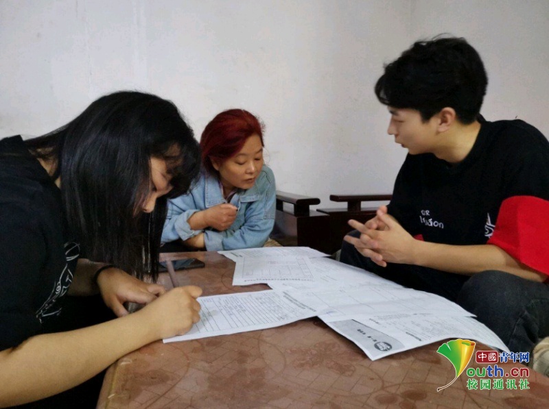 图为团队队员为村民讲解助农扶贫政策,宣传新型助农模式。