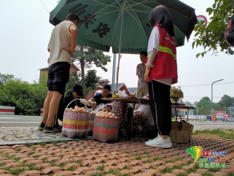 图为团队成员帮助村民售卖滞销农产品。